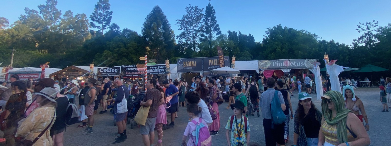 g when intended an impossible ideal. Even so, we made great time and there was hardly any traffic. After a LOT of driving to a little area tucked away behind the Sunshine coast in Queensland, the final leg of our journey saw us pulling up at the gates of the Woodford Folk Festival at midday of Boxing Day. Complete with fairies, elves and other colourful characters, we waited with a mixture of excitement and amusement in the car-queue to get in. That was followed by a big afternoon of setting up camp.