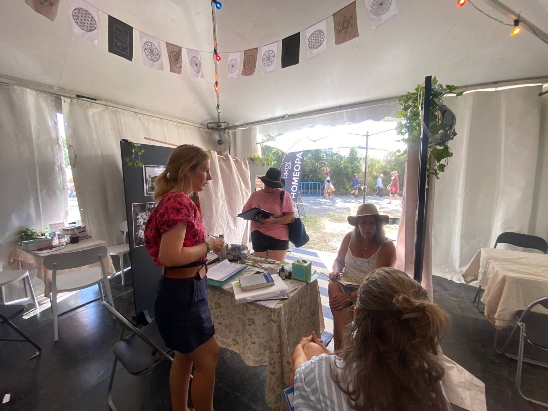 First shift at the homeopathy tent the next morning involved helping with the final bits and pieces of setting it all up, which Mandy Heritage and her partner Ashley Brett tirelessly complete the vast majority of every year. Mandy is a powerhouse of energy and passion. She tells the story about how if it wasn’t for volunteering at the homeopathy tent at the Woodford Folk Festival when she was a student, she might never have felt guided enough to make that final leap into becoming a practicing homeopath.